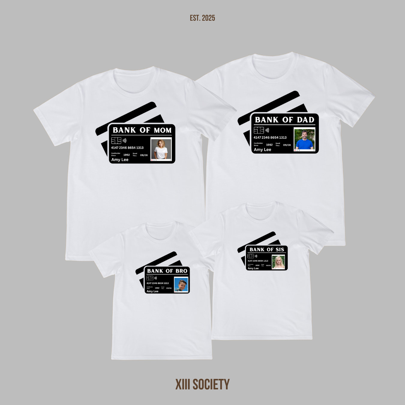 Invest in love, withdraw in laughter! Our custom "Bank of the Family Members" tees are the perfect way to showcase your favorite family members. Whether it's mom, dad, sibling, or grandma, our designs will make you smile.