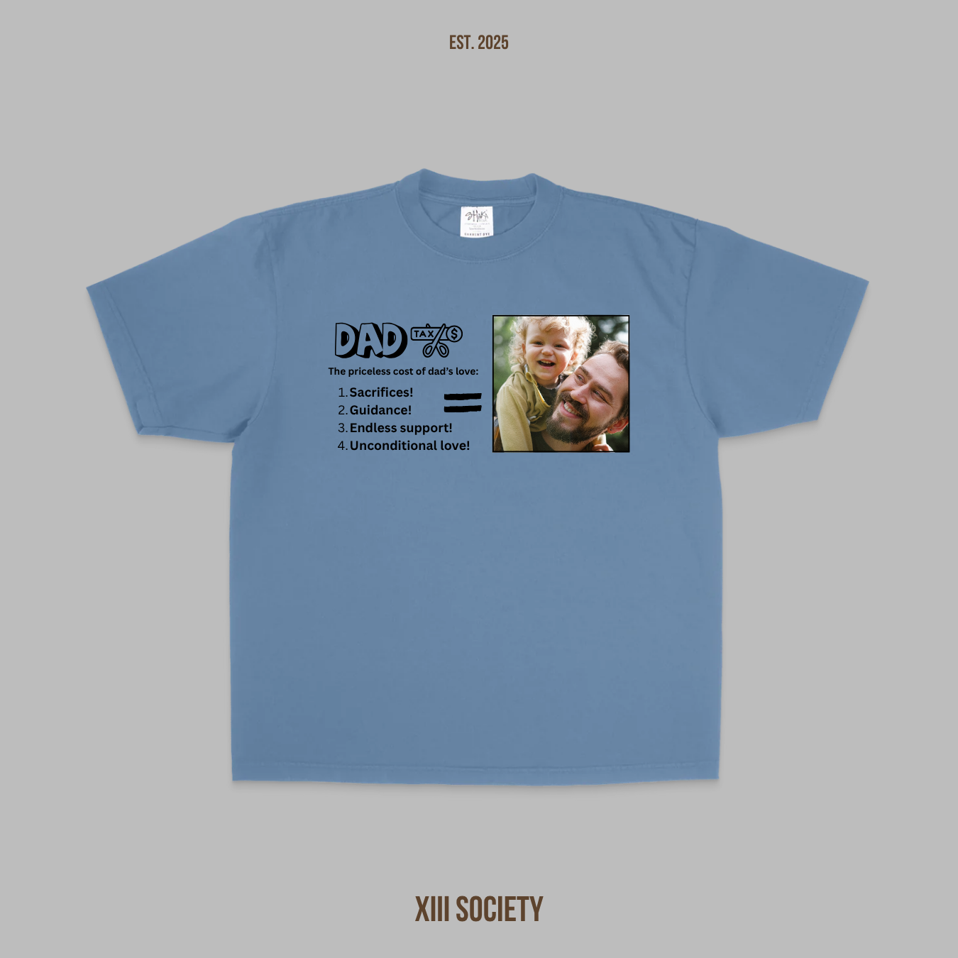 Order now and celebrate the dad in your life! Simply upload your favorite photo, and we'll take care of the rest. Join the XIII Society Inc. family and make every day a special one with our personalized apparel!
