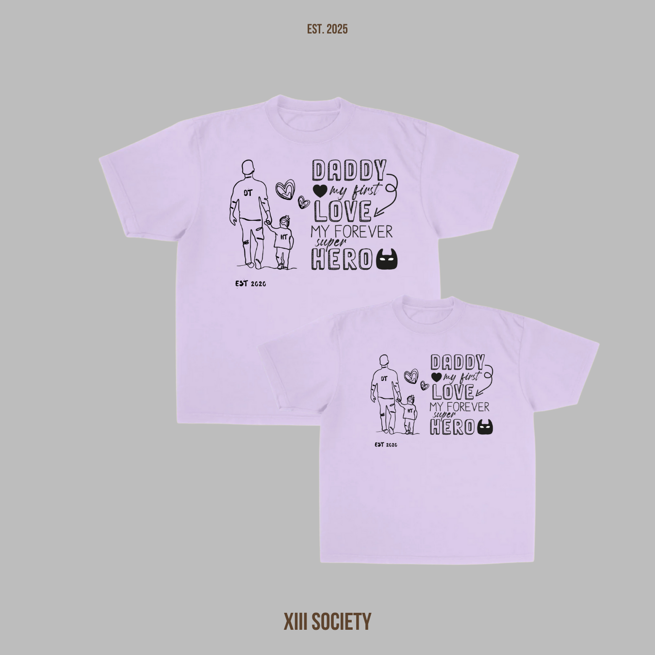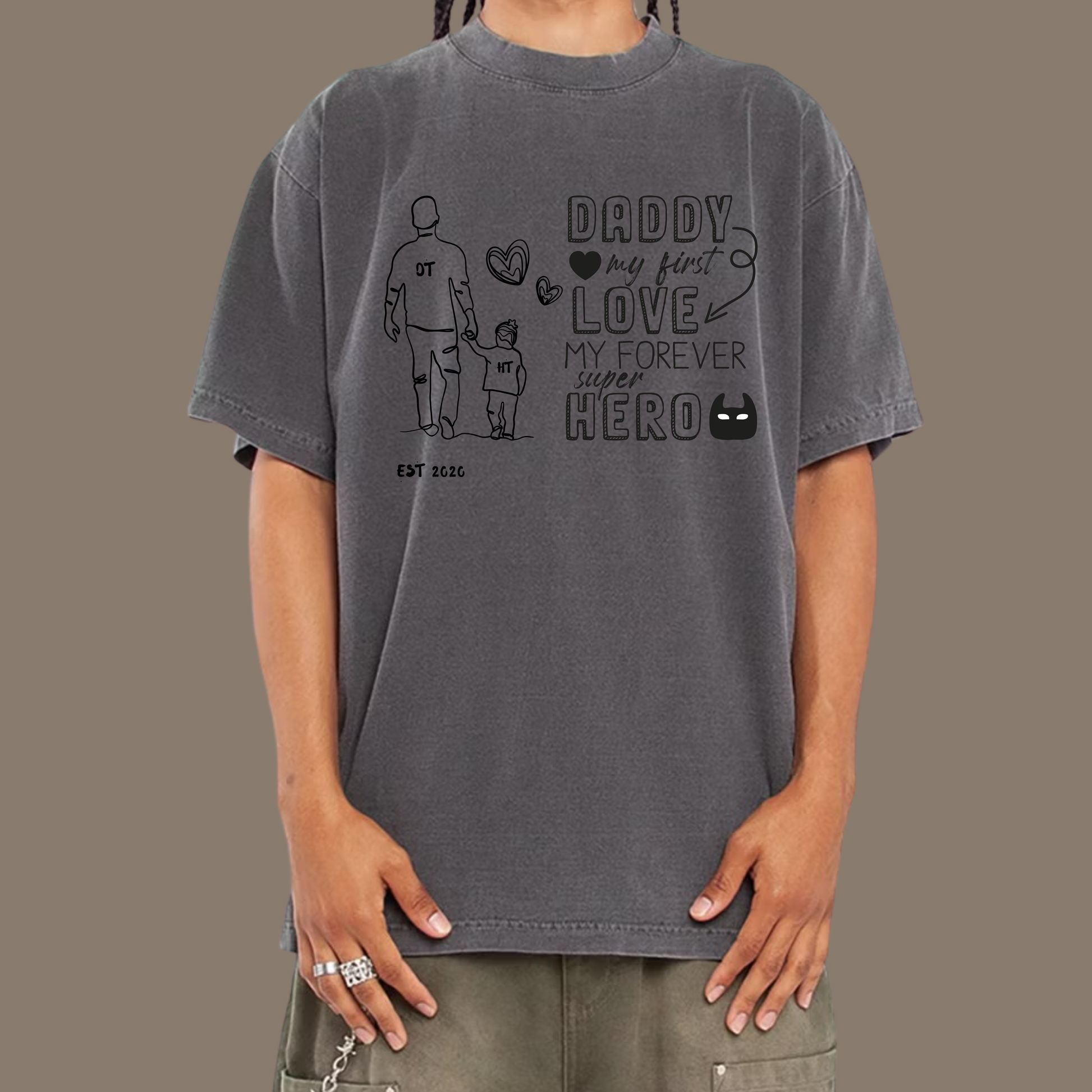 Celebrate the superhero in your life with our heartwarming “Daddy, My First Love, My Forever Super Hero” custom t-shirt! This adorable design is perfect for kids who look up to their dads as their ultimate heroes.