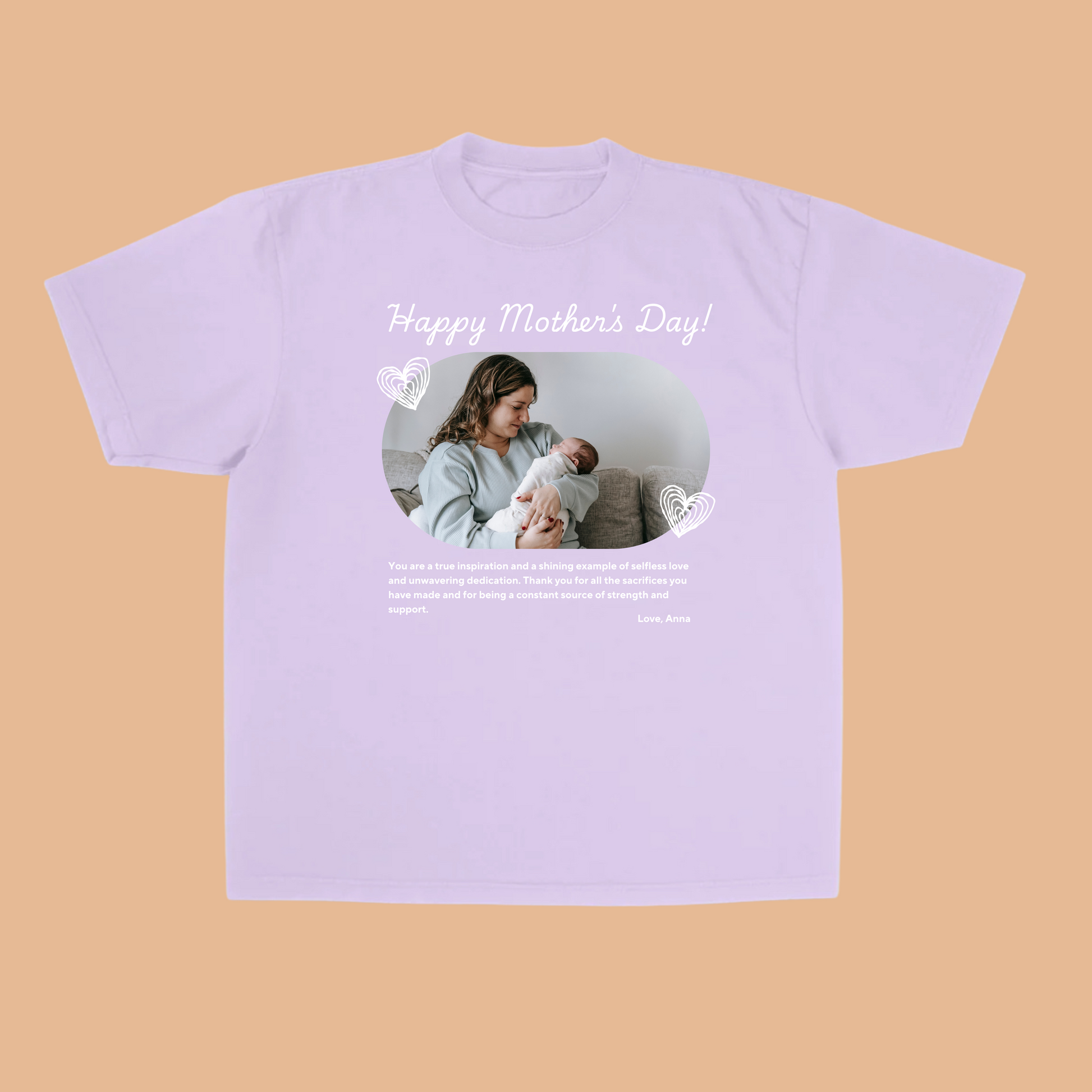 Celebrate the special mom in your life with our heartwarming “Happy Mother's Day” custom t-shirt! This unique design features a beautiful photo of a mother and her baby, along with a heartfelt message.