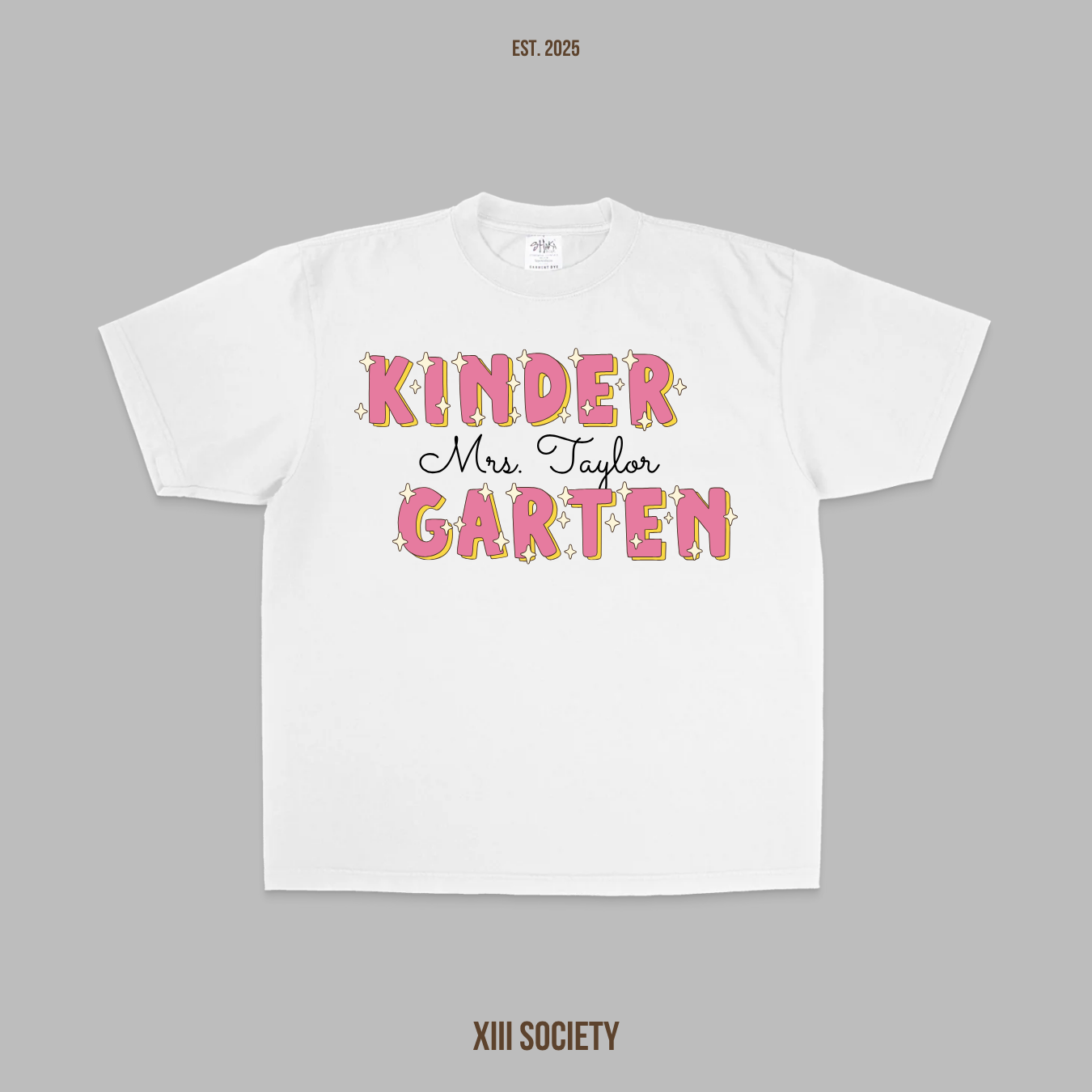 Celebrate the magic of kindergarten with our adorable custom tee! Perfect for back to school season, this design is sure to bring smiles to the faces of little ones and their proud parents.
