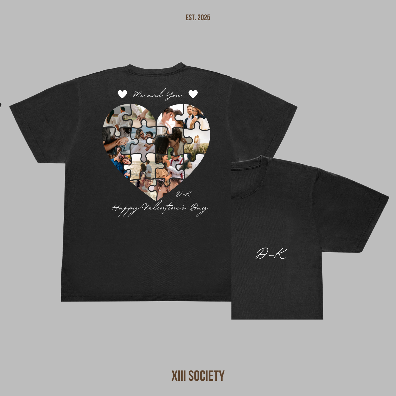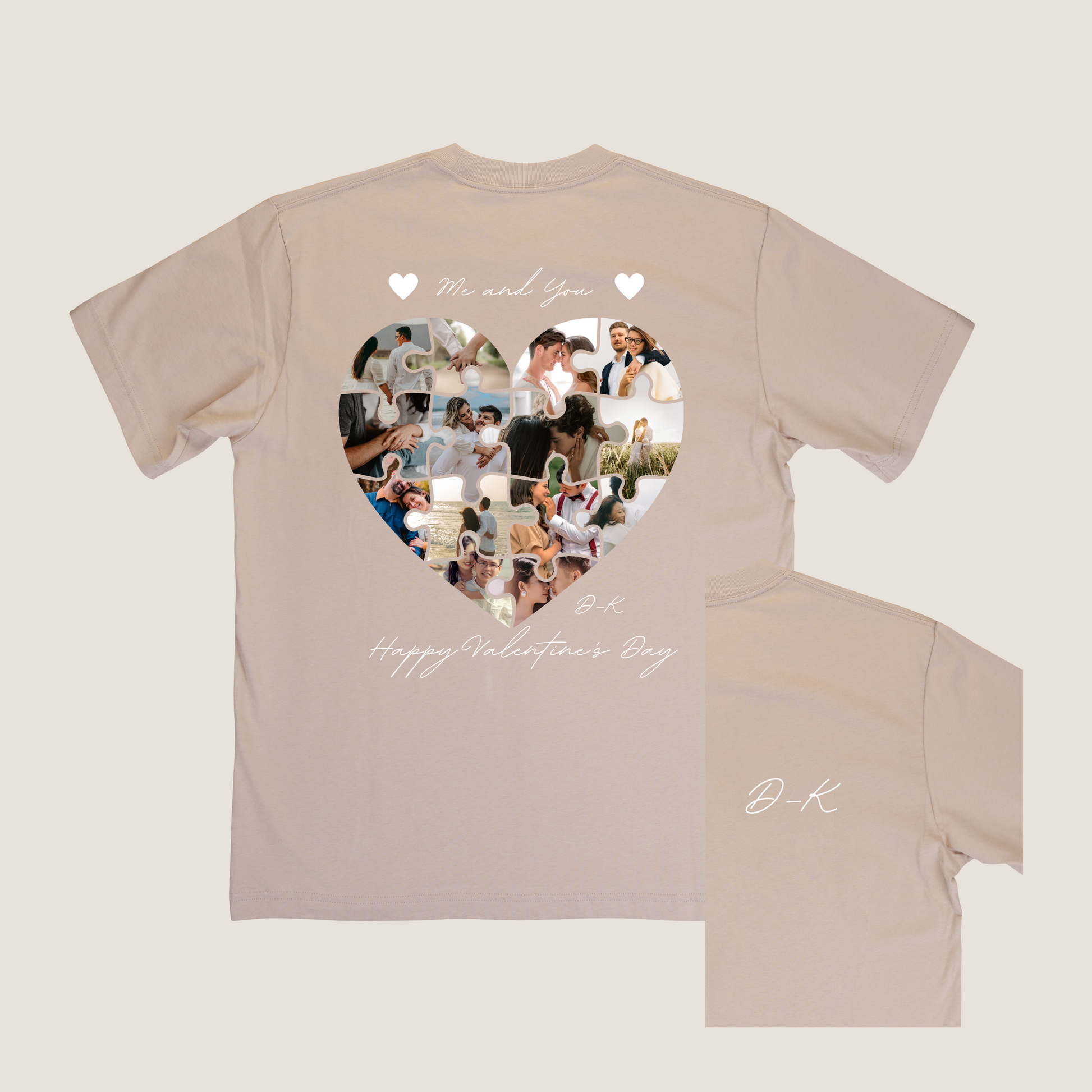 Celebrate the special bond between you and your loved one with our heartwarming “Me and You Happy Valentine's Day” custom t-shirt! This unique design features a beautiful heart-shaped puzzle piece collage with *up to 14 photos* that capture the love and connection between you and your partner.