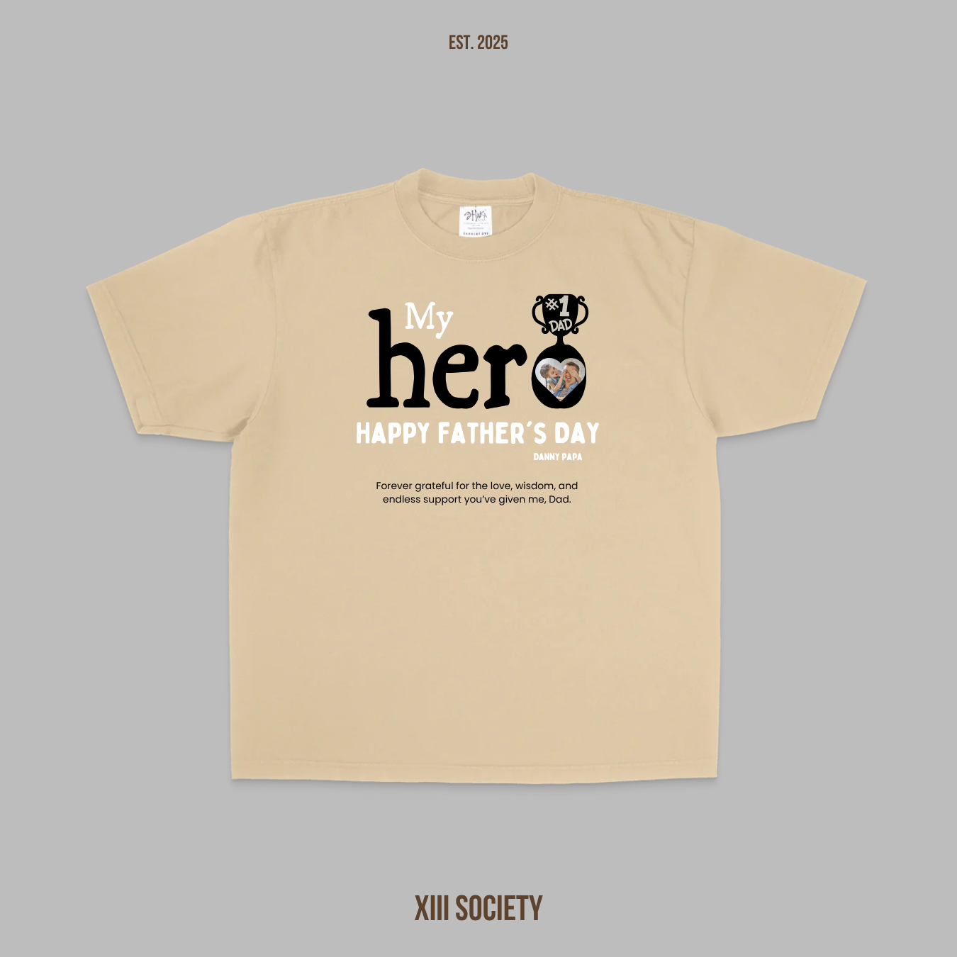 Celebrate the special bond between you and your dad with our heartfelt “My Hero #1 Dad! Happy Father’s Day” custom t-shirt! This unique design allows you to express your gratitude and love for your dad in a thoughtful and meaningful way.