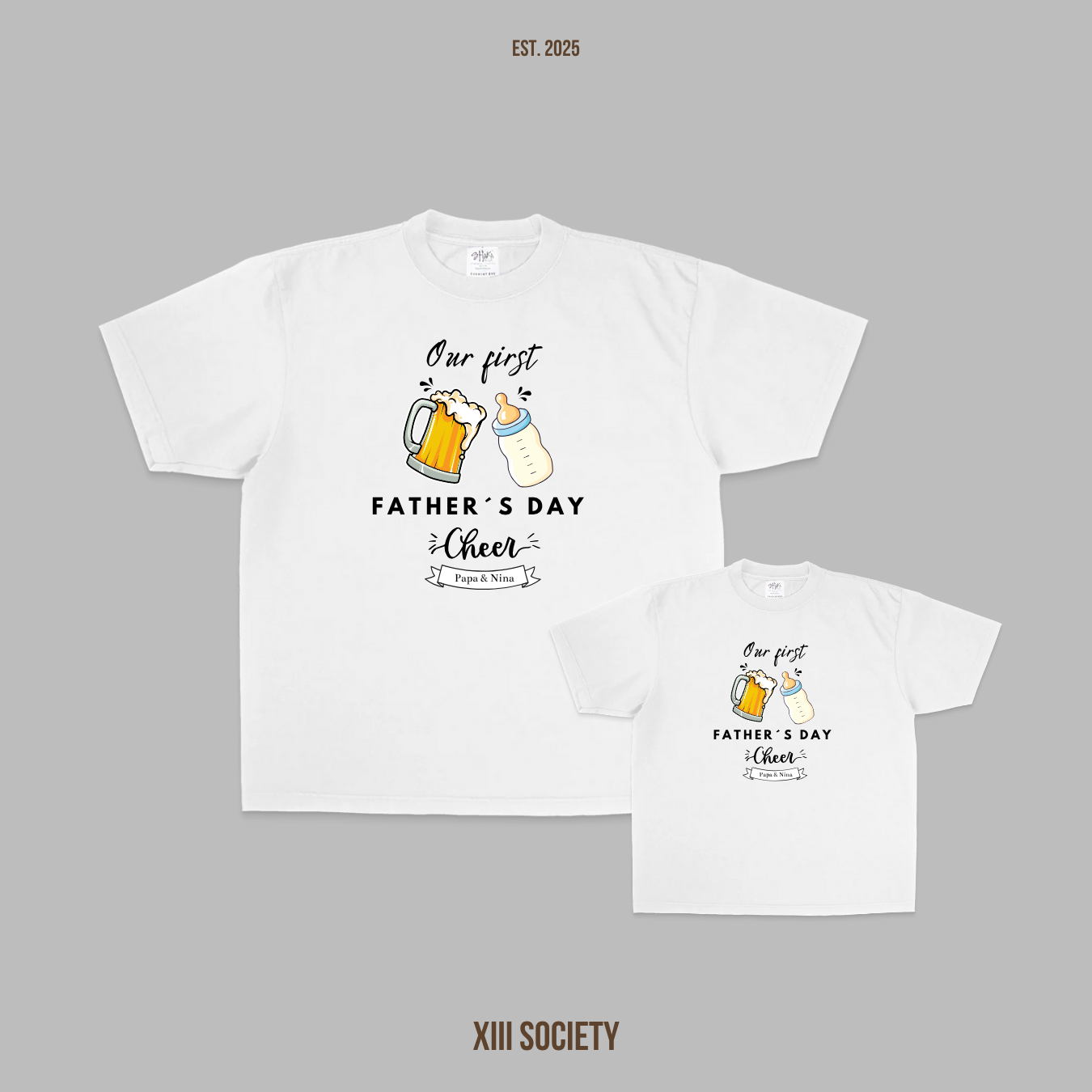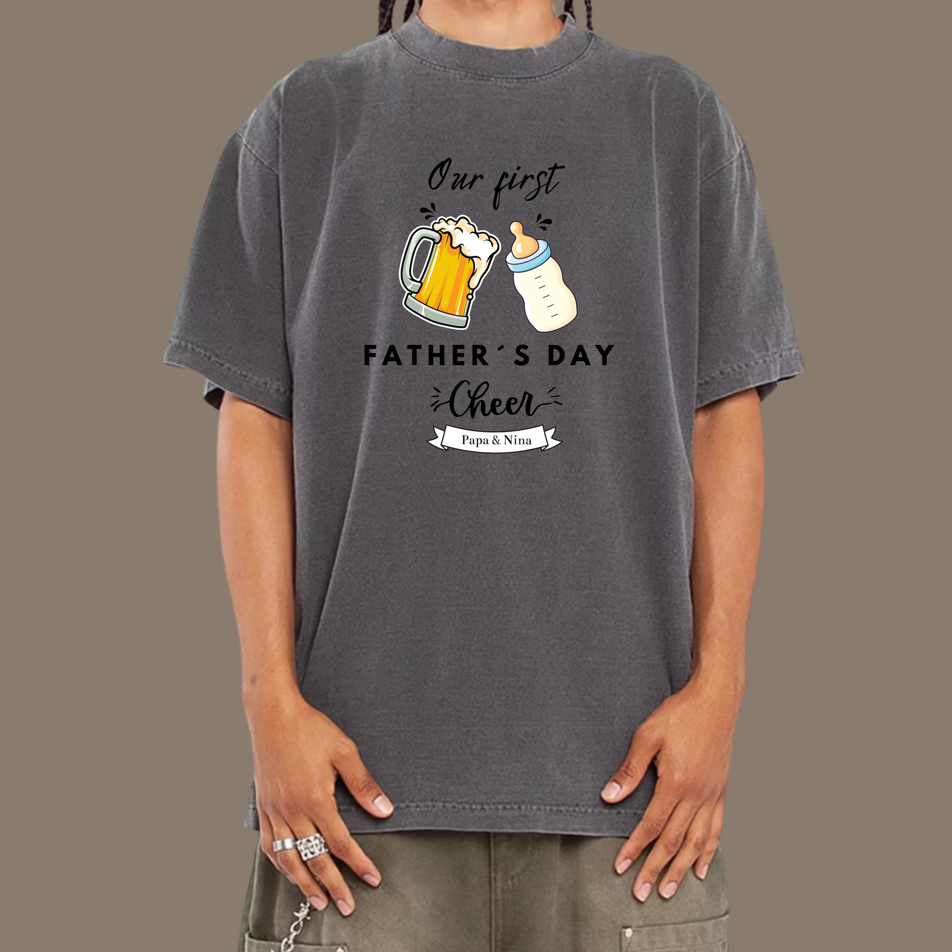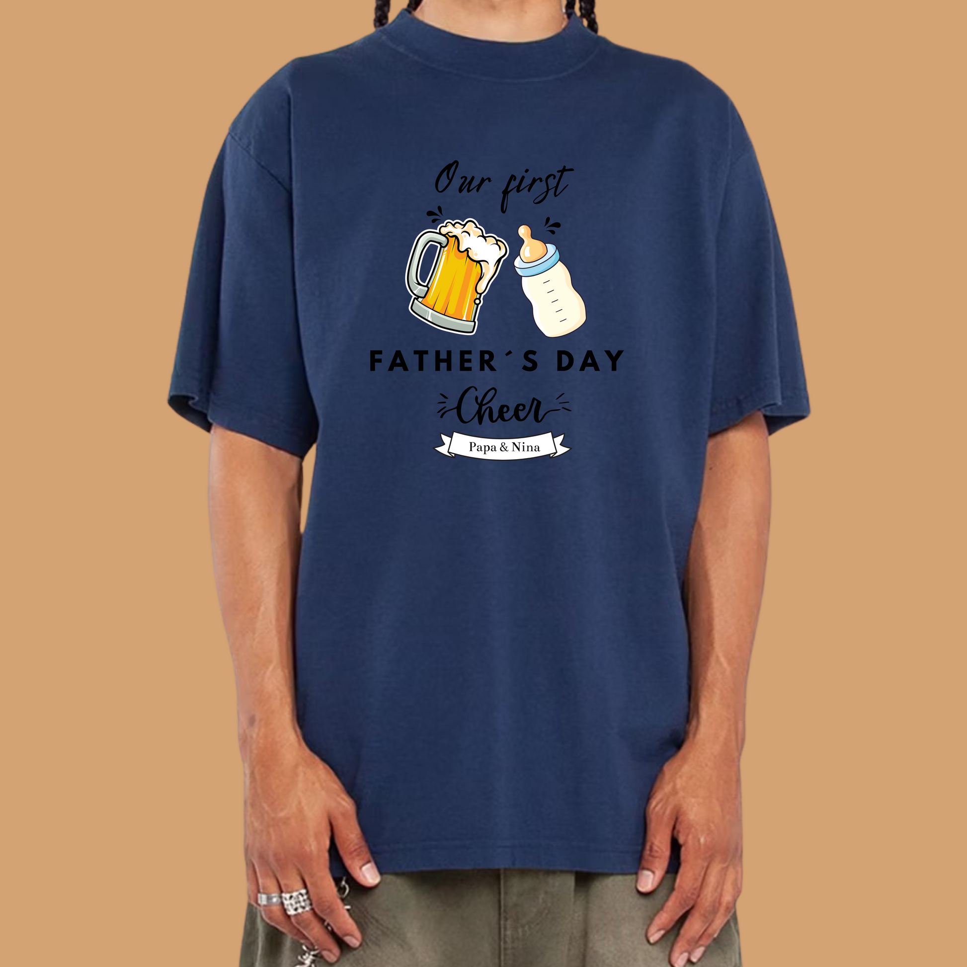 Celebrate your first Father's Day with our unique and playful custom design! This special illustration features a beer mug and baby bottle, perfectly capturing the essence of this milestone.