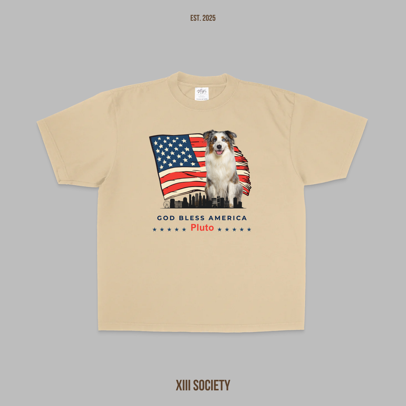 Celebrate American spirit with our custom dog-themed tees! You can add:
