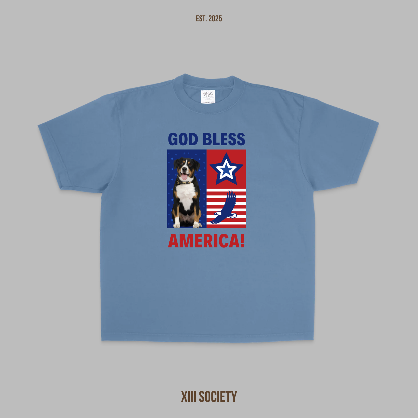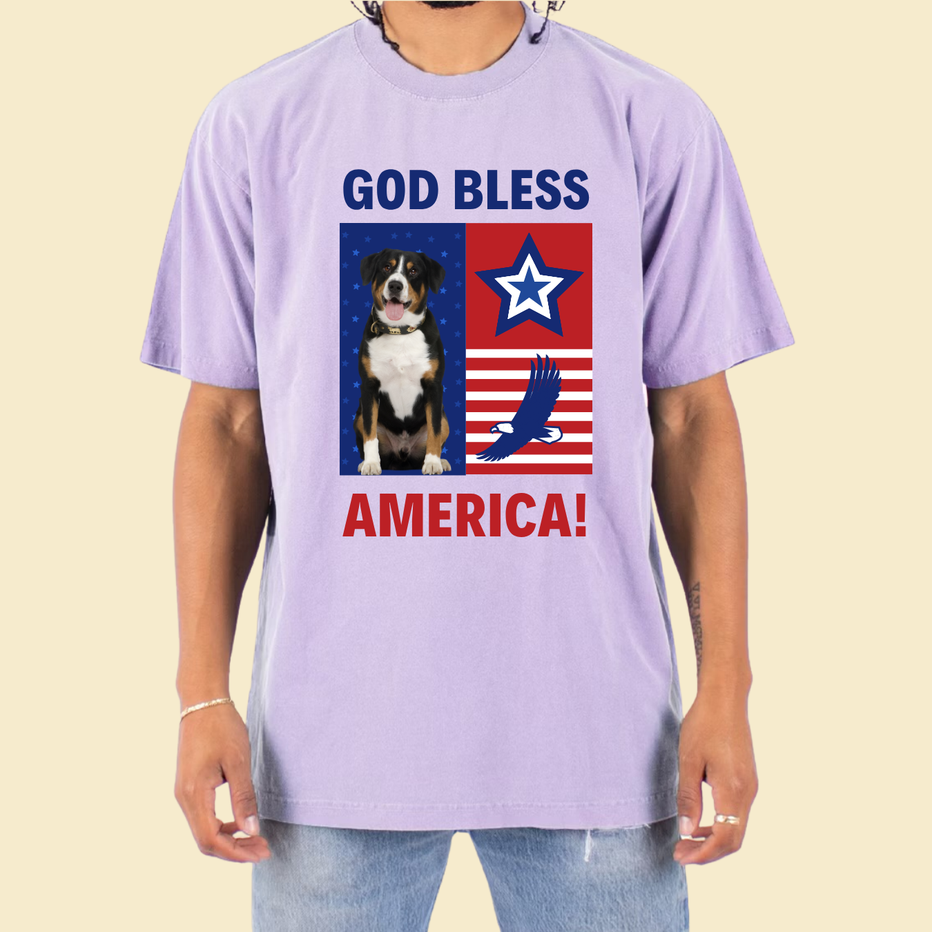 Show off your love for America and your furry friend with our custom tees! You can personalize with: