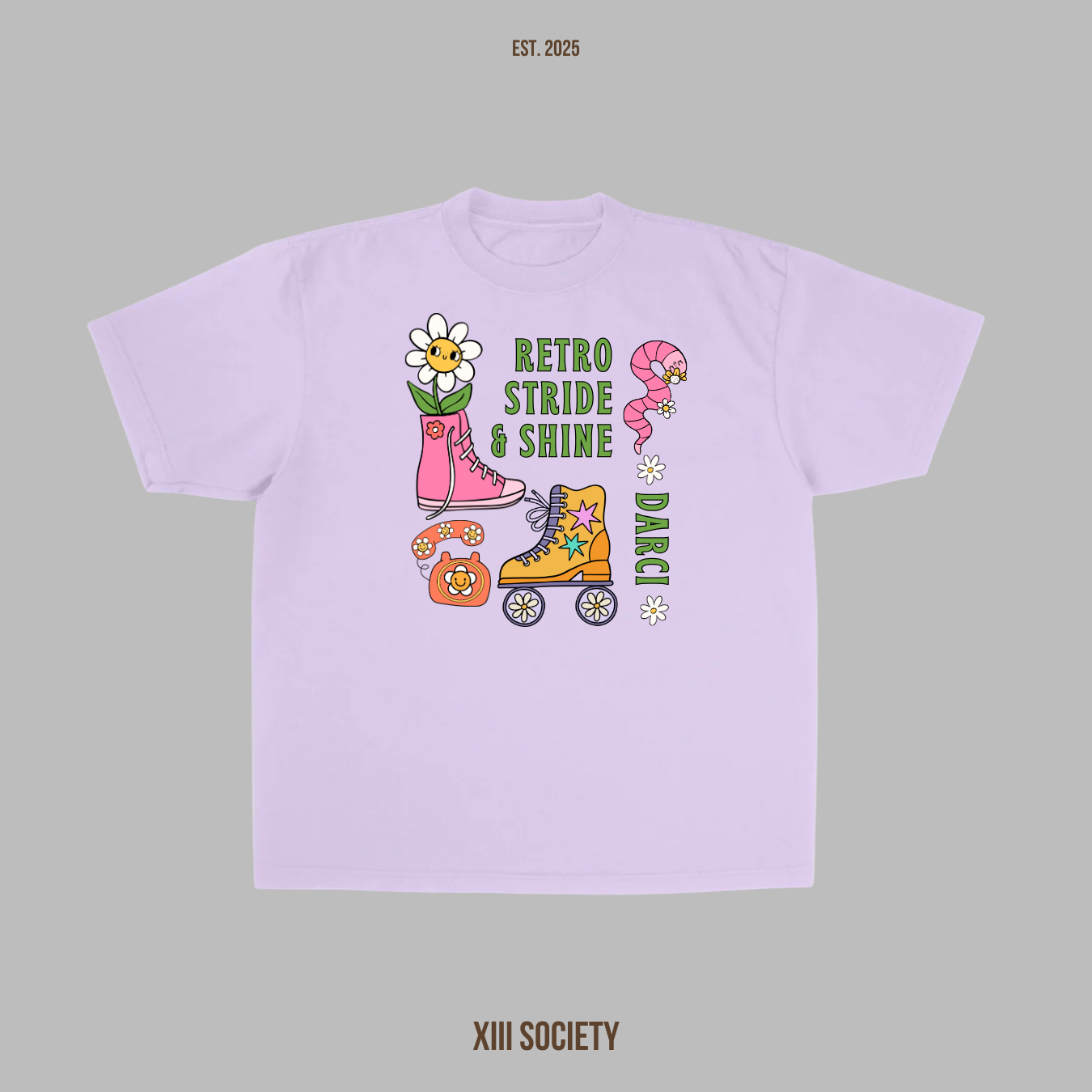 Get ready to groove with our "Retro Stride & Shine" tee, a fun and nostalgic design that's sure to turn heads! Perfect for anyone who loves vintage vibes and good old-fashioned style, this custom t-shirt from XIII Society Inc is a great way to add some retro flair to your wardrobe.