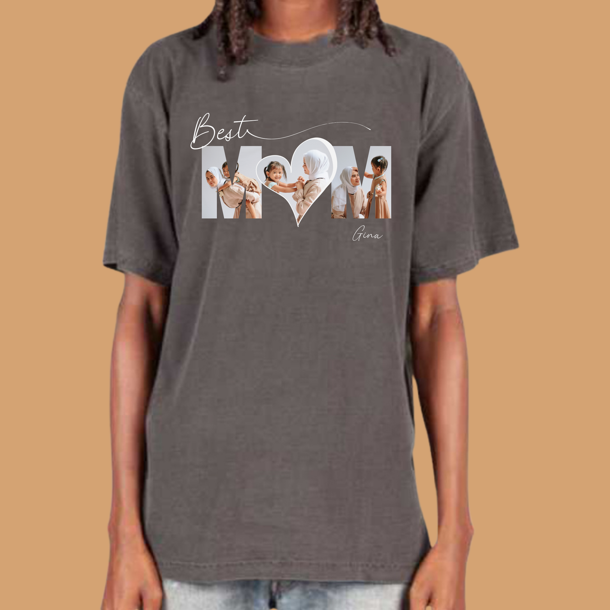 Celebrate the ultimate mom with our heartwarming “The Best Mom” custom t-shirt! This unique design features 3 special photos that showcase the love and connection between a mom and her child.