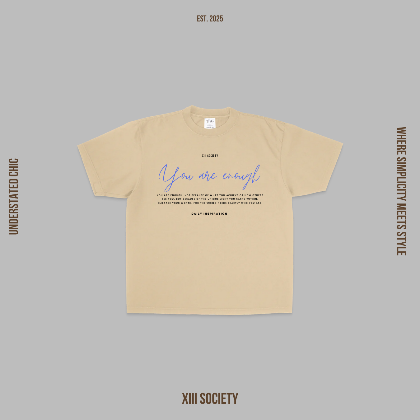 Introducing the "You are enough" tee from XIII Society, a powerful statement piece that embodies understated chic and effortless style.