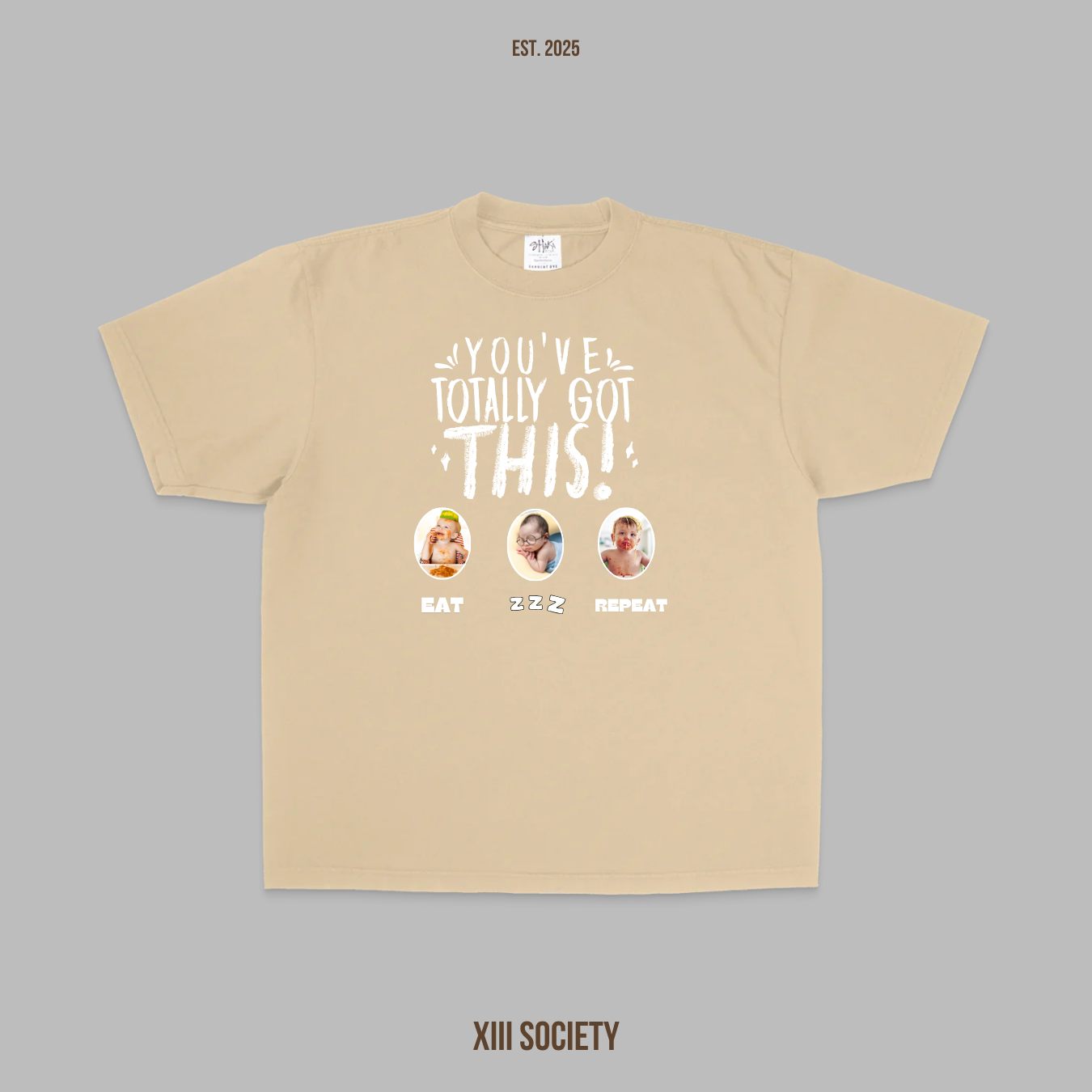 Own your day (or night) with our motivational yet relatable “You’re Totally Got This! Eat Zzz Repeat” custom t-shirt! This fun design is perfect for anyone who needs a boost of confidence and a good dose of sleep.